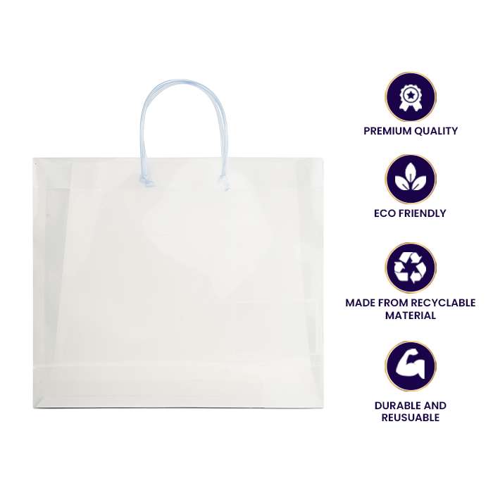 Reveal the beauty of your gifts with our Big Transparent Luxury Gift Bag. Spacious and eco-friendly, it features a loop handle and a visiting card slit, combining elegance and practicality. Perfect for showcasing your thoughtful presents, this bag adds a touch of sophistication to any occasion. Order yours today and let your gifts shine through.