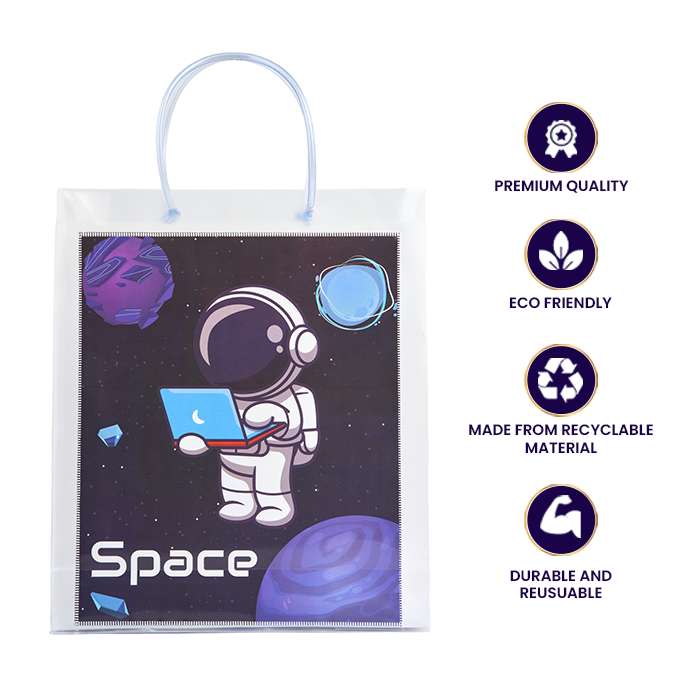 Digital Space Luxury Transparent Gift Bag with Loop Handle, the perfect blend of style and functionality. This elegant bag features a semi-transparent design with a sophisticated matte finish, providing a glimpse of your gift while maintaining a refined look. The chic loop handle ensures comfortable and stylish carrying.