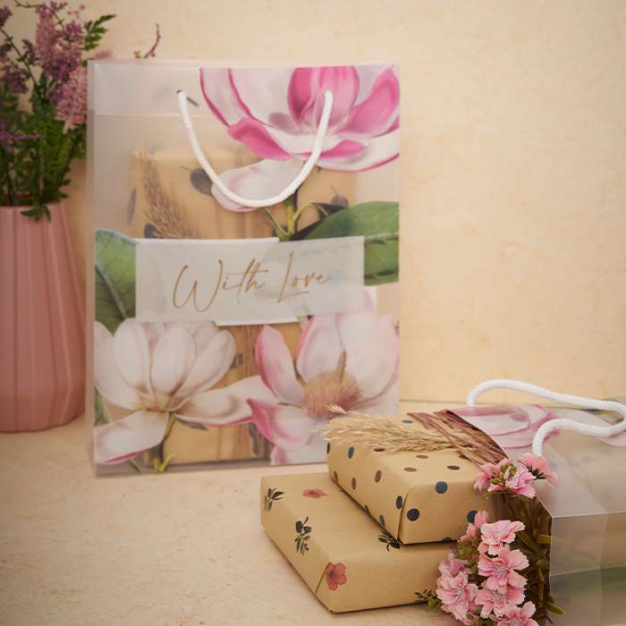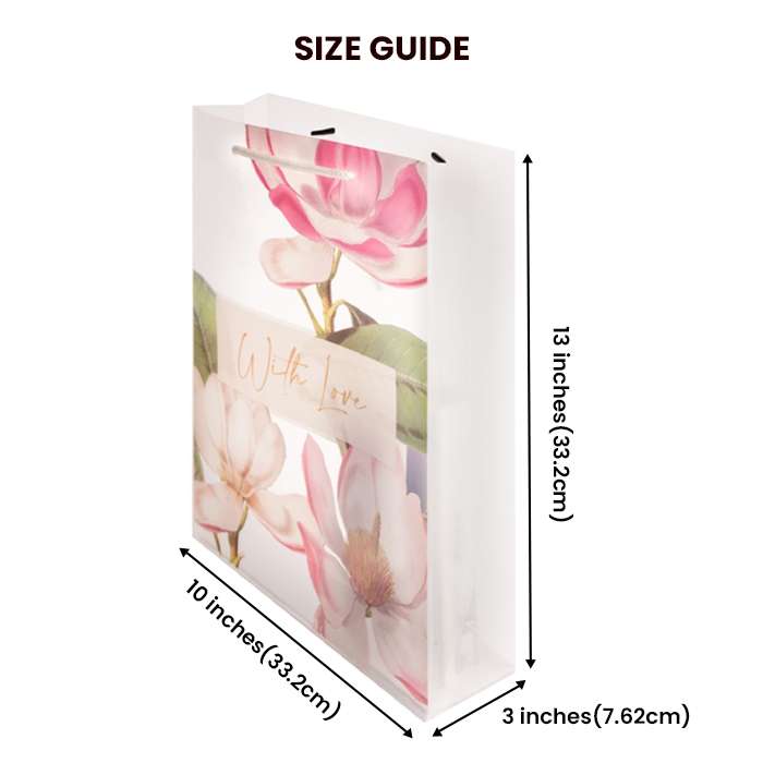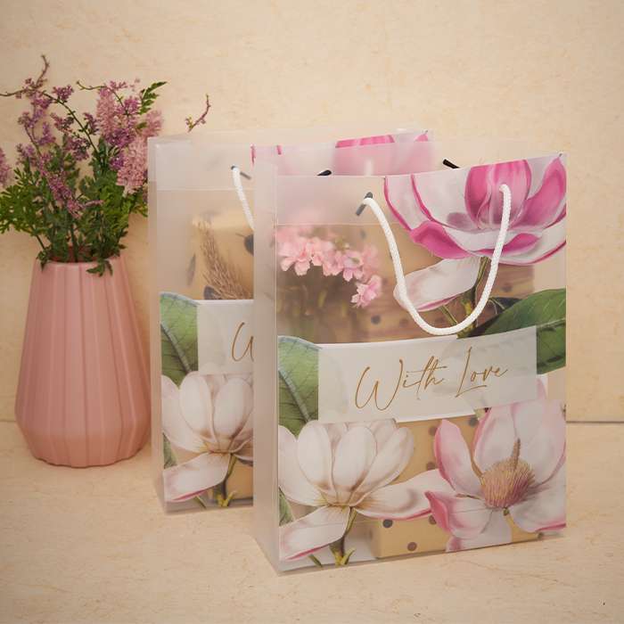 The Floral with Love Luxury Gift Bag with Rope Handle is more than just pretty petals—it embodies a vibrant dance of romance and love. Crafted from eco-friendly polypropylene, it champions sustainability while maintaining impeccable style. The frosted semi-transparent base, adorned with delicate prints, transforms each bag into a visual masterpiece. Enhanced by a thread rope handle, it elevates not only your gift but also your expression of refined elegance.