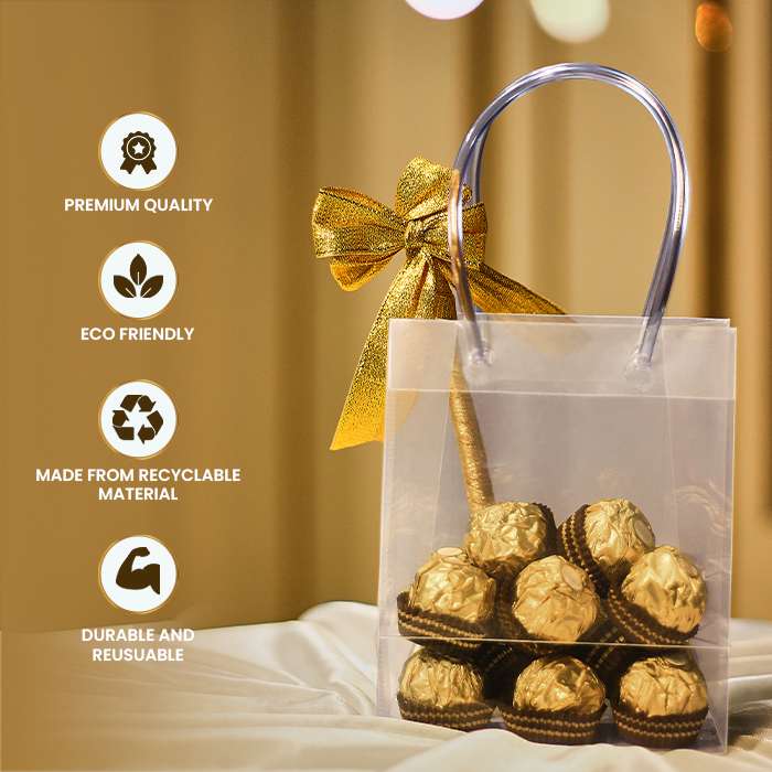 Unveil the elegance of your gifts with our Small Transparent Luxury Gift Bag. This bag provides a clear canvas for your thoughtful presents, featuring a convenient loop handle for easy carrying. Its transparent finish offers a sneak peek at the love and care inside, appealing to those who value simplicity and sophistication. Elevate your gifting experience with this eco-friendly choice that allows your love to shine through with every use.